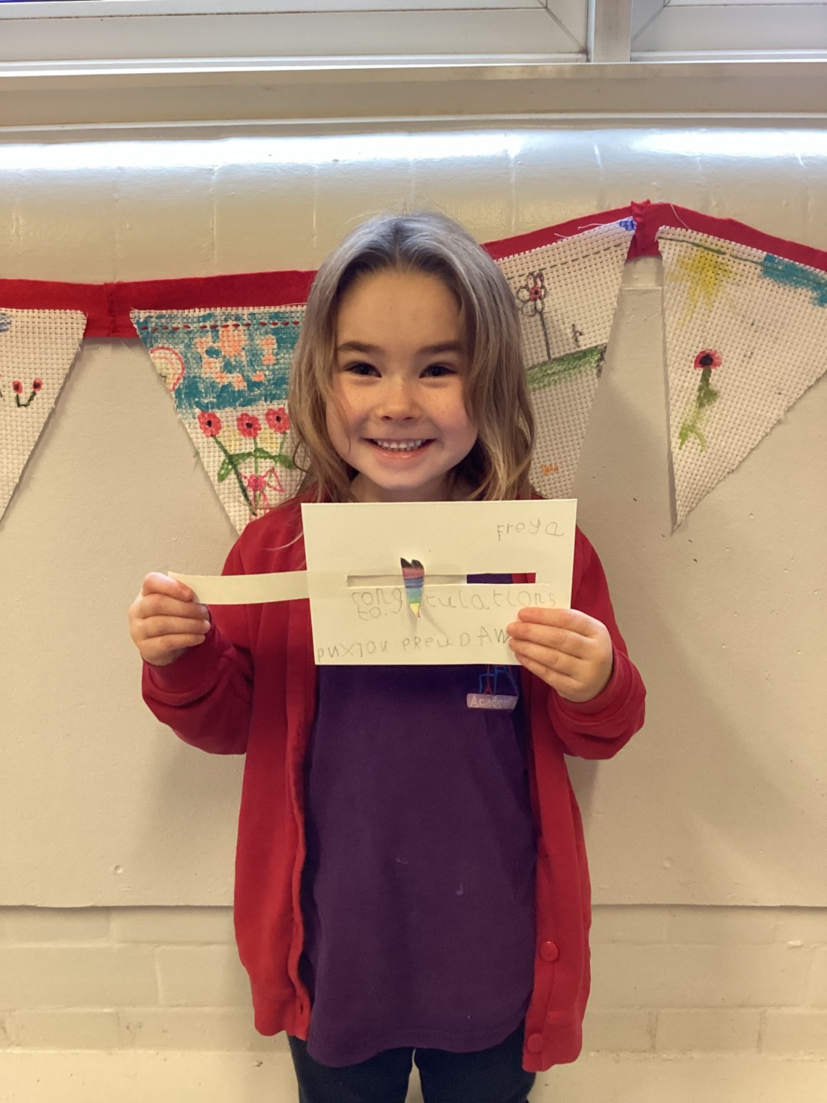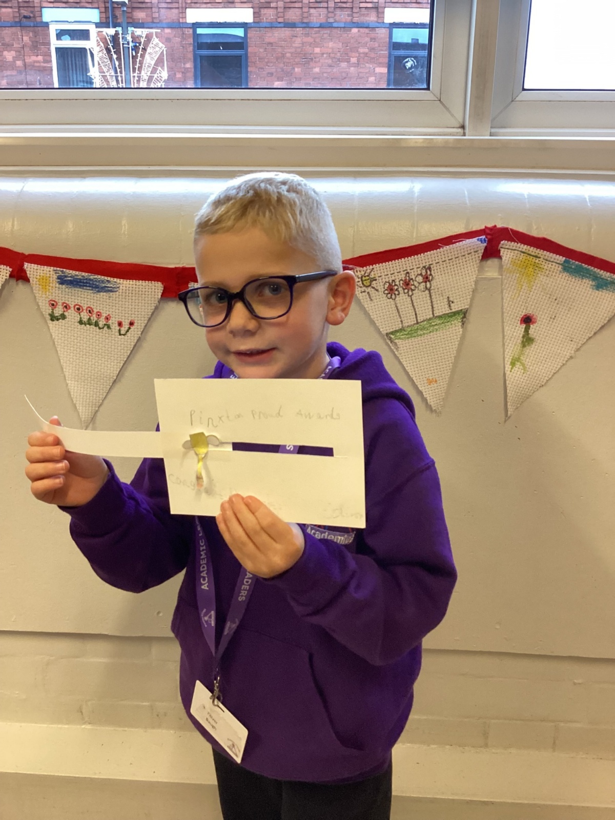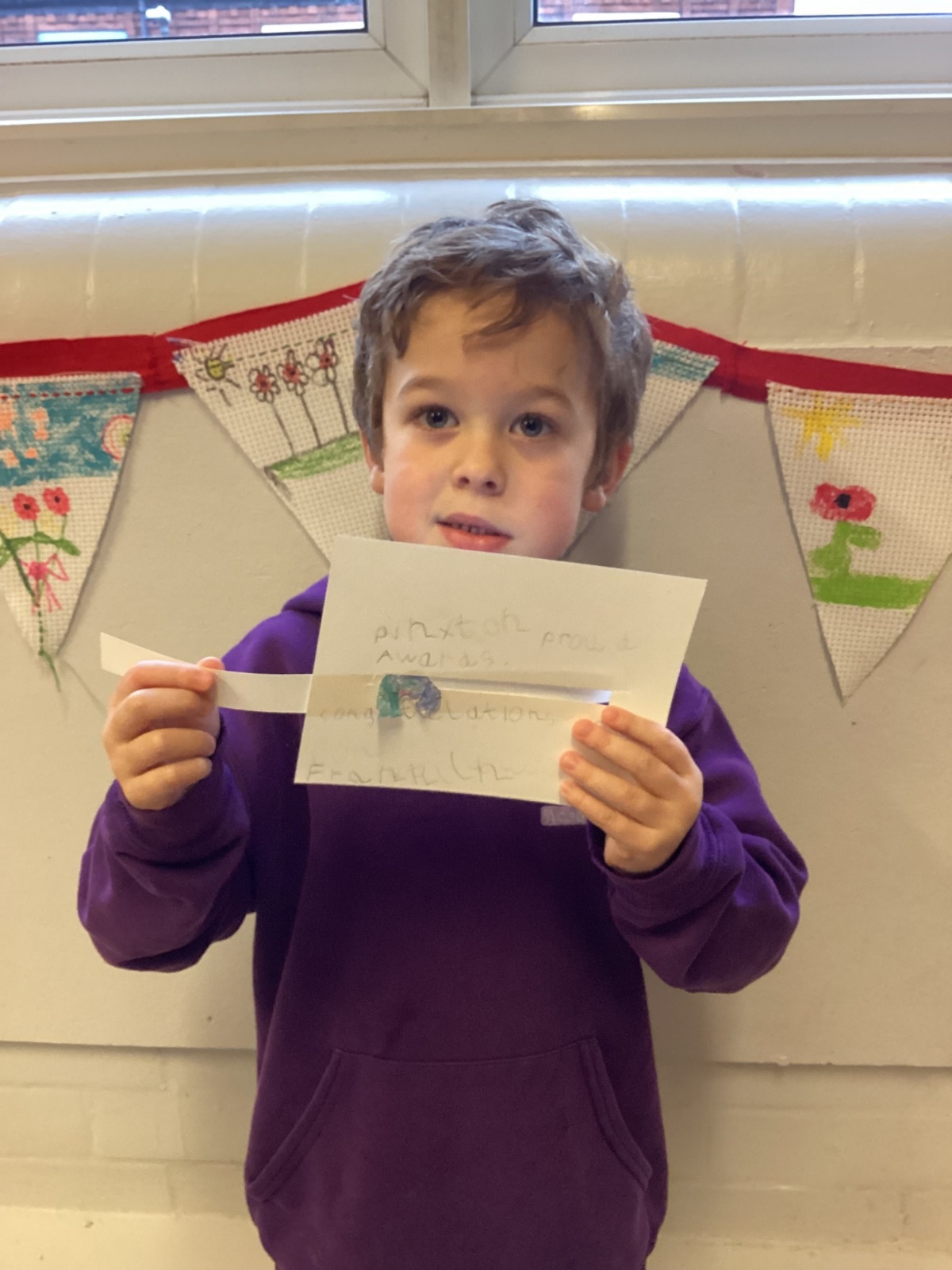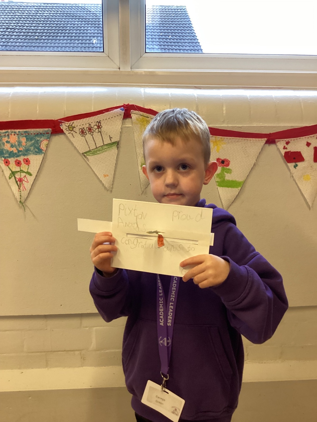 Year 1 worked hard in creating their moving certificates. They then presented them to people in the community that they were proud of in our Pinxton Proud Awards afternoon.