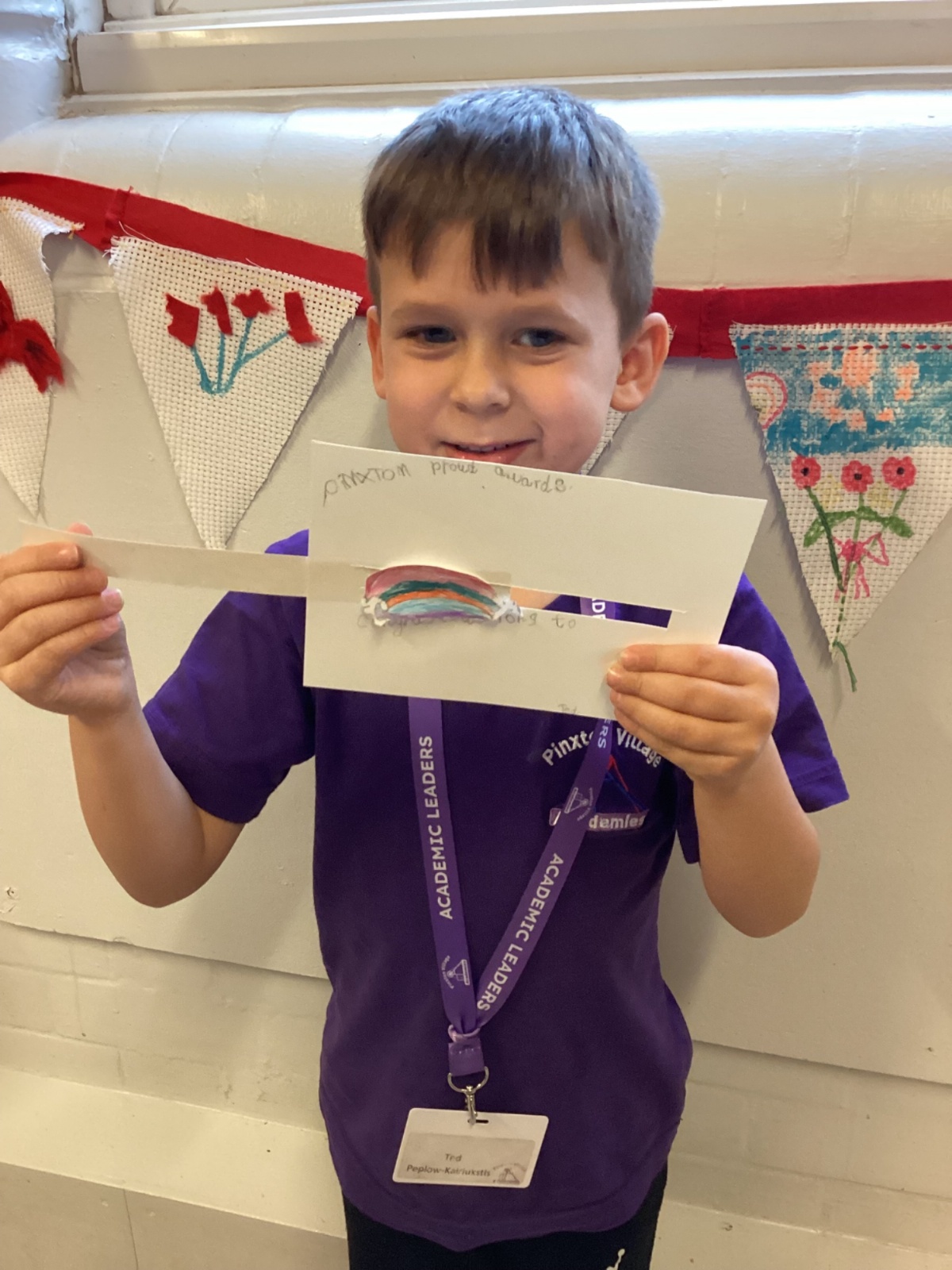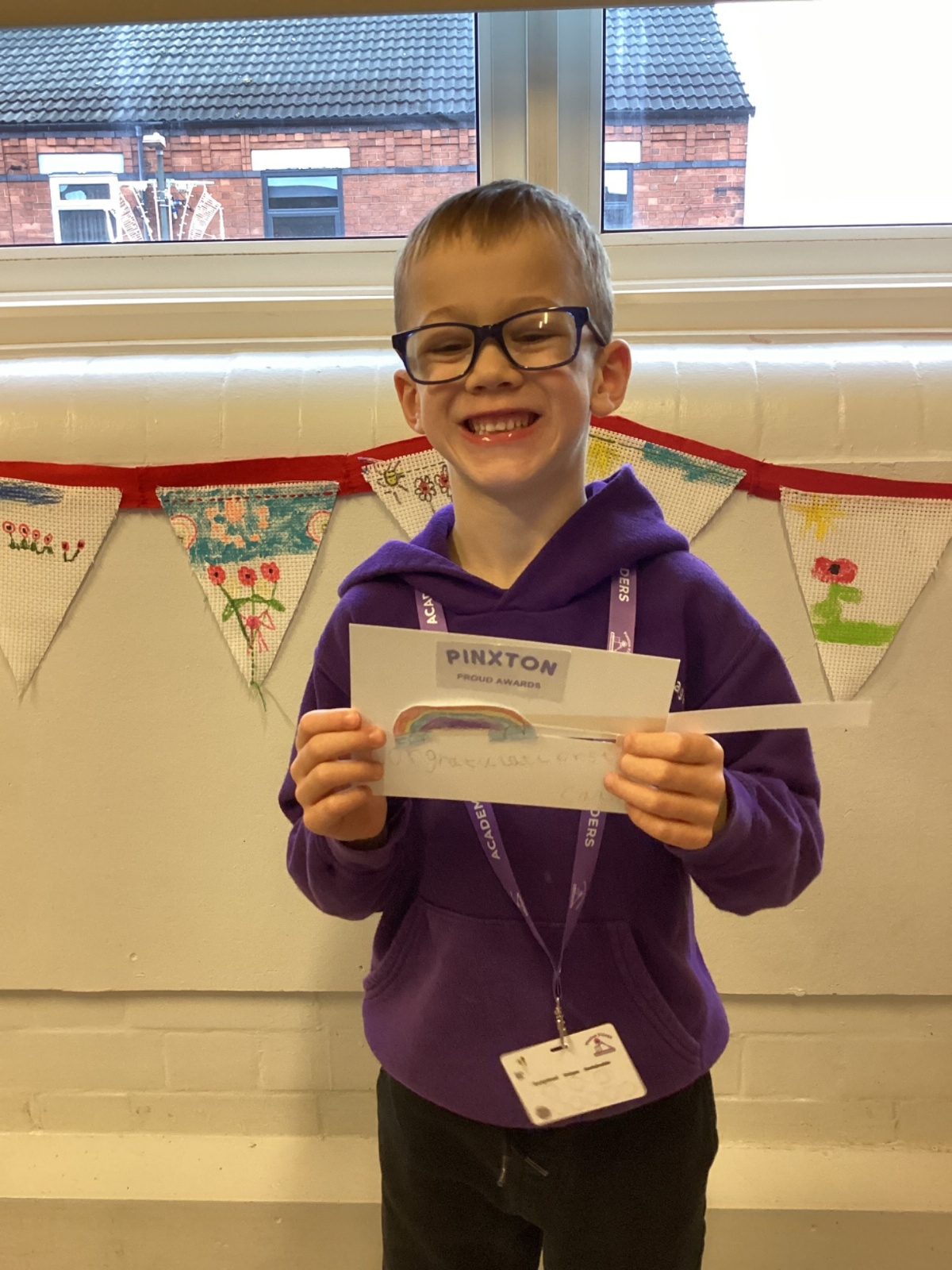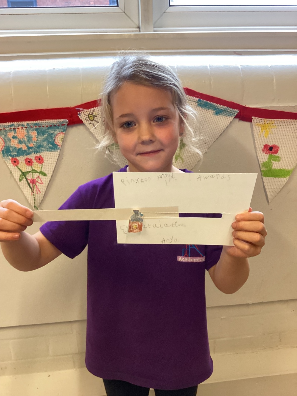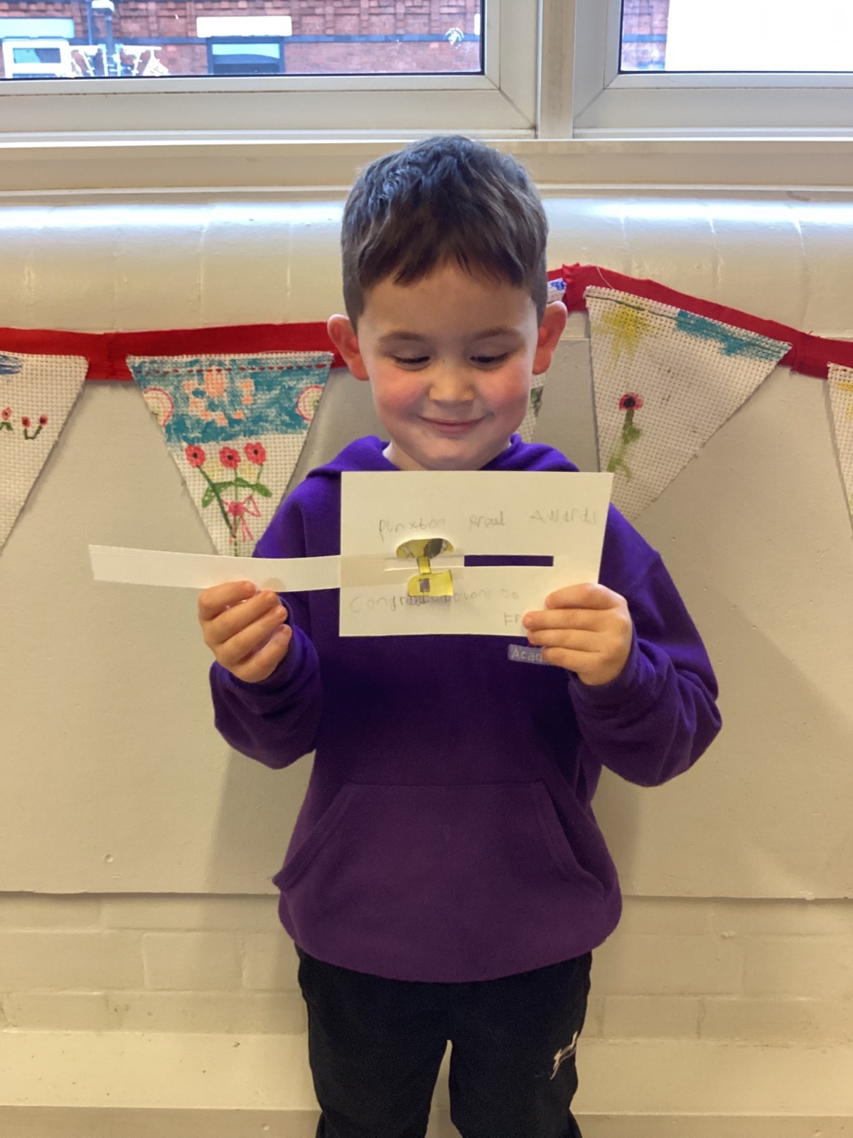 Year 1 worked hard in creating their moving certificates. They then presented them to people in the community that they were proud of in our Pinxton Proud Awards afternoon.