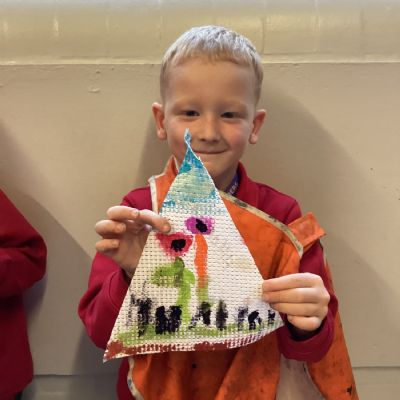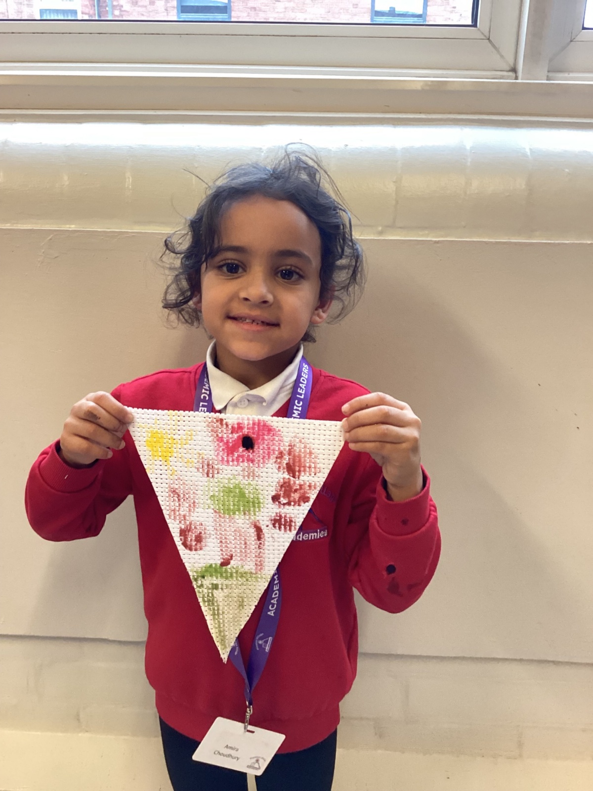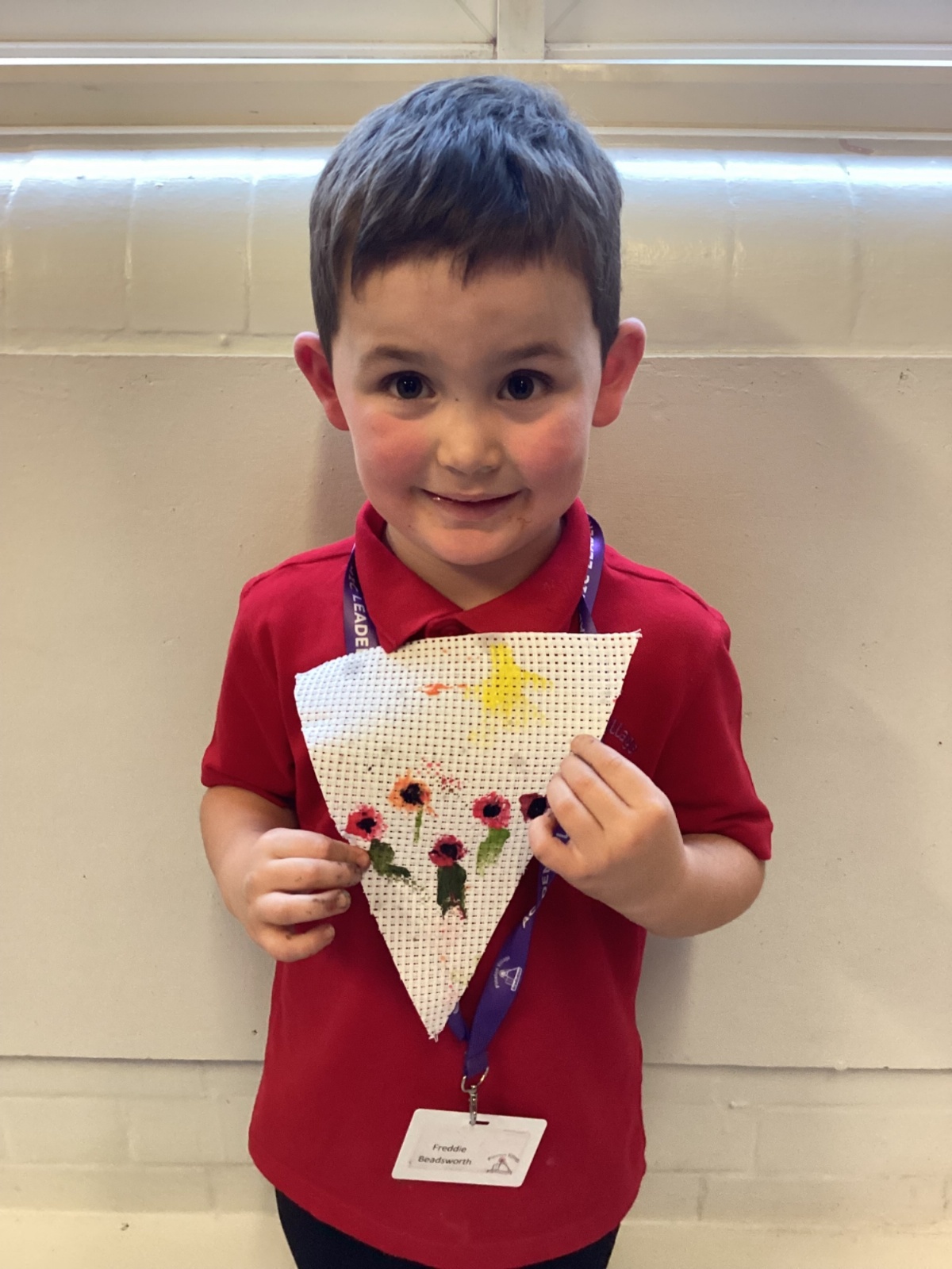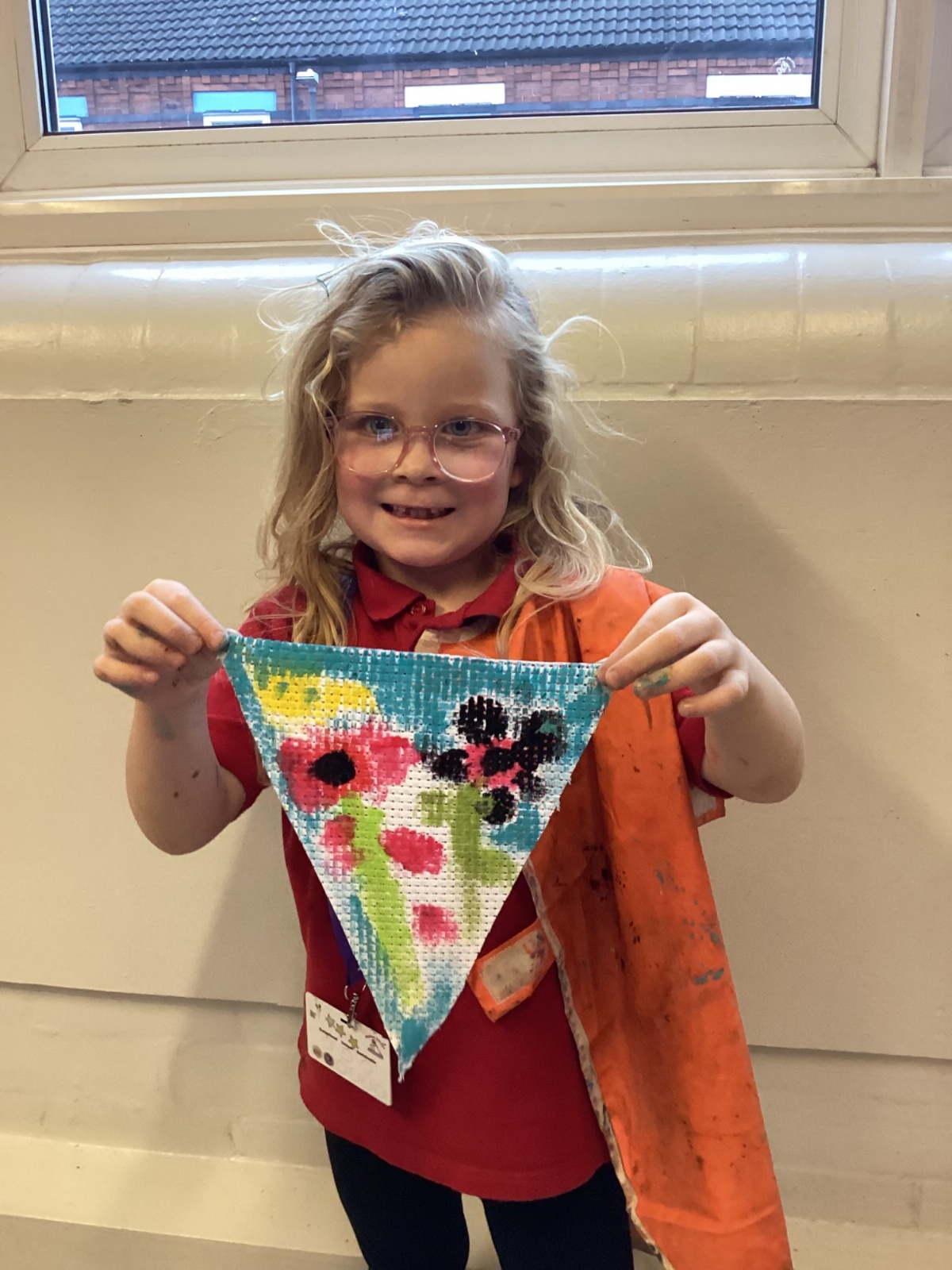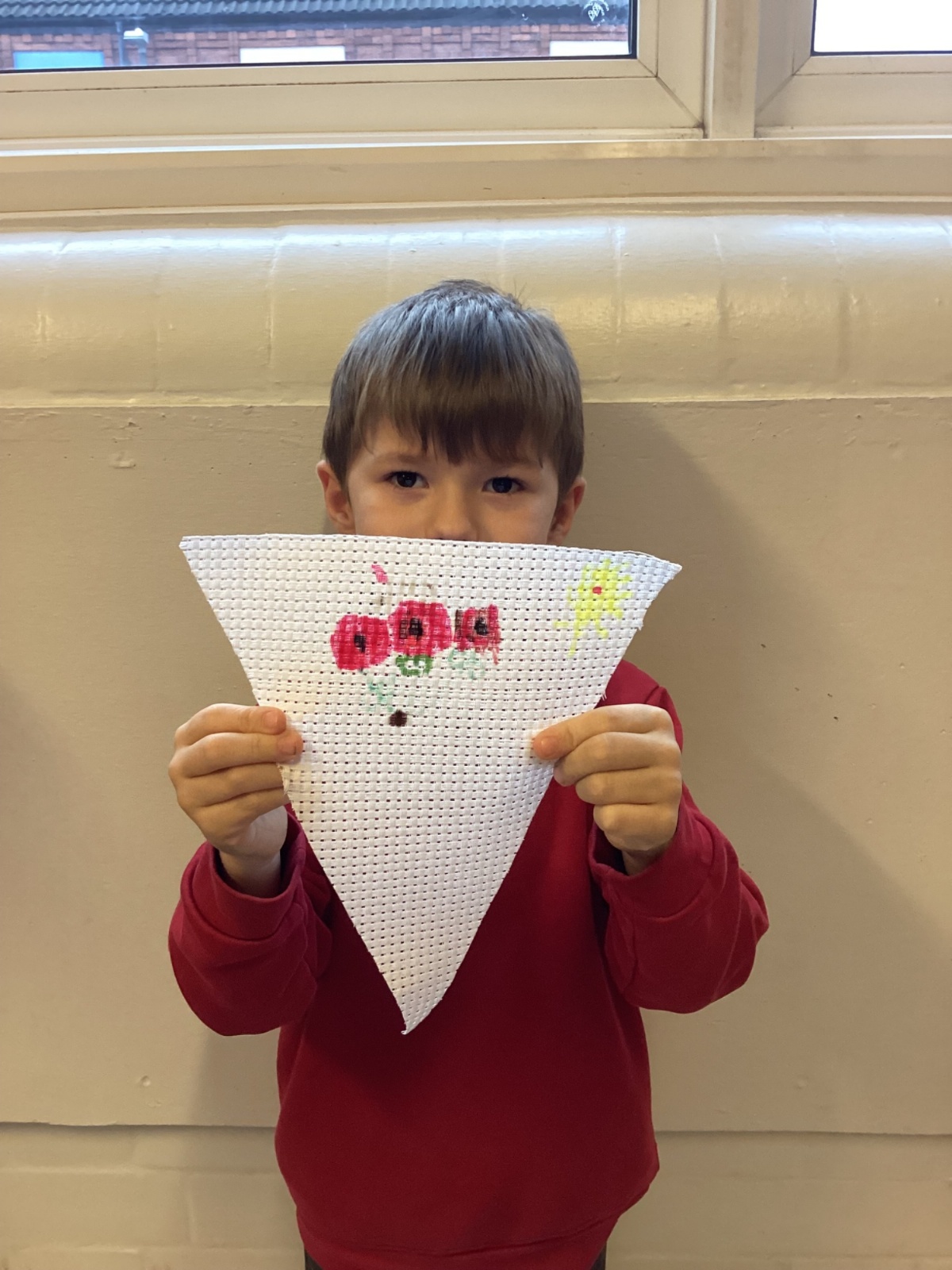 The children designed and created their poppy bunting. We invited parents in to help with our sewing and then we presented our poppy bunting to the Royal British Legion!