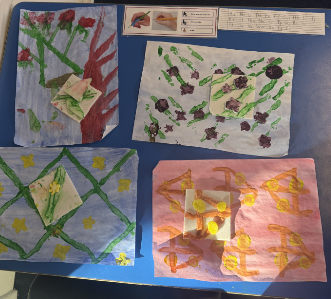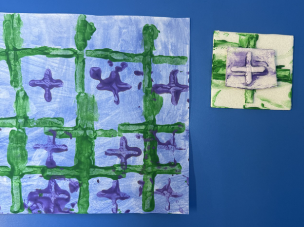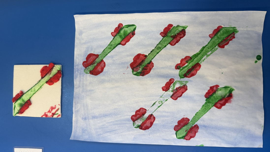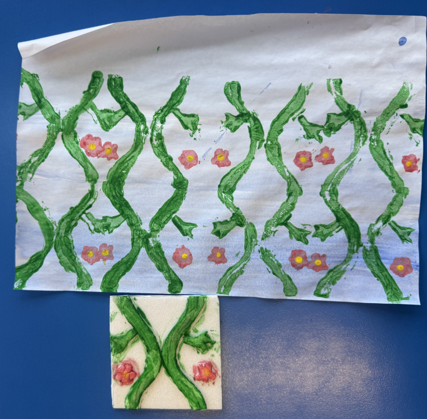 As part of our enquiry, we looked at the work of William Morris and designed our own wallpaper influenced by his work. Have a look at the printing in progress.